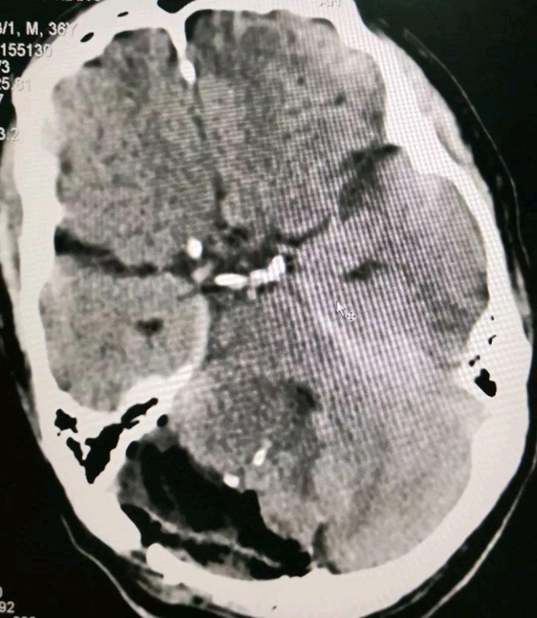 另一位置的增强磁共振提示肿瘤长向小脑深部,靠近脑干组织(人的生命中枢)