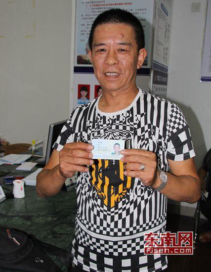 陈天津激动地向记者展示他的港澳居民居住证。 东南网记者 谢玉妹 摄