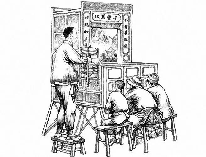 有人经不住诱惑,前来光顾,只见拉洋片的人一边拉动箱子里的图片,一面唱,里面不时呈现出一幅幅十分美丽、动人、新颖、奇特的图片,什么美人鱼、狮身人面、摩登女郎,应有尽有,引人入胜。最吸引人的图片当数上海大世界和外滩风光,使我们许多未到过上海的人,遐想无限。