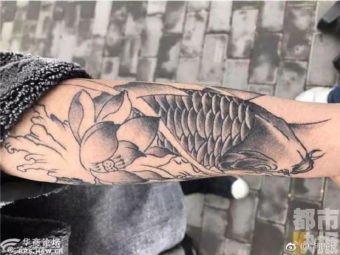 近日,西安15岁男孩小刘背着父母,花了七百元在东三爻村一家纹身店里,给左胳膊上纹了一条鱼,把父母气的够呛。小刘父母质疑,孩子还是未成年人,纹身店怎么能操作?纹身店老板表示,小刘曾口头说自己18岁,于是按其要求在左手臂上纹了一条锦鲤。经过工商,卫生监督部门的检查后,发现该纹身店没有任何手续,目前这家纹身店已经停业整顿。