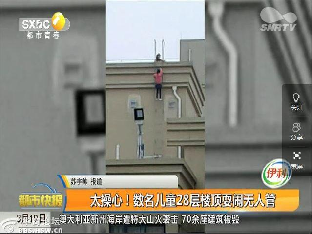 最近在西安沣东新城一小区高层楼顶发生的一幕让人后怕不已。从视频中我们可以看到在对面28楼的高层的楼顶边沿上坐着几个孩子,看上去就是学龄前儿童或者是刚上小学的孩子,不时上上下下追逐打闹,身旁就是没有任何防护措施的大楼边缘,让人看着揪心!