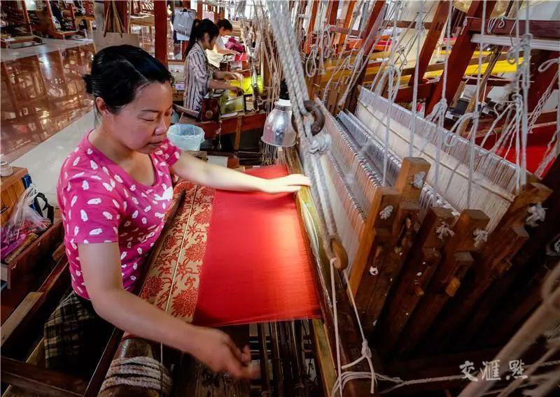 细长的飞梭来回穿梭,天宫云锦的机房里传出提花机“咔咔咔”的撞击声。织工徐双银正在织一幅牡丹花挂布,为此她每天要忙碌9个小时。千百年来,云锦工艺不断精良,并在红窑镇落地生根。这里是全国最大的云锦生产基地,品种已发展至近400种,目前全国80%以上云锦织造能手以及80%以上云锦产品均出自这里。