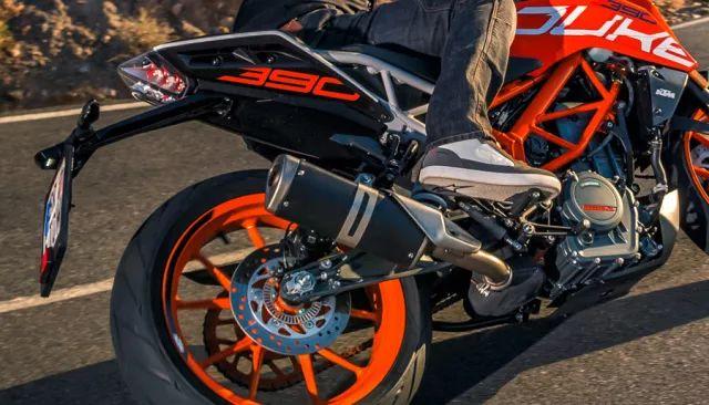 为了适应严格的欧4排放标准,全新KTM 390 DUKE对排气也进行了改动,由之前的内藏式排气改为了现在的侧排。