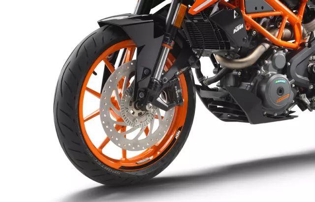 为了让安全性再上一个台阶,全新KTM 390 DUKE将前刹车碟的尺寸由300mm加大到320mm,制动力进一步增大。另外值得一提的是,刹车碟的材质也改为稳定性更强的金属烧结材质,抗热衰能力明显提升。