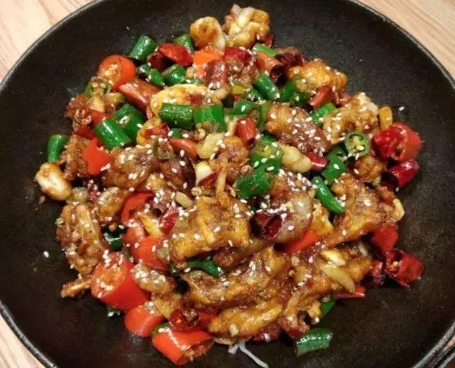 歌乐山辣子鸡作为川菜的代表之一,食材的优劣直接决定了口感的好坏。主料选用鲜嫩肥美的鸡肉,辅料则是上等的辣椒与花椒。厨师对火候的把握也是一流,辣子鸡色泽鲜艳,与辣椒交相辉映,鸡块入口酥脆,带有干辣椒过油的清香,可谓是麻辣酥香。
