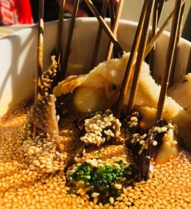 小吃的话,掌上君在这里给大家推荐麻酱小肚和巴蜀串串香,小肚看上去就是麻酱配合着辣椒油拌了一下的感觉,但是吃到嘴里却是多重口感,让*欲人**罢不能。