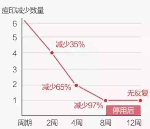 使用八周,痘印减少97%,停用1个月内,效果明显,并且不会复发。