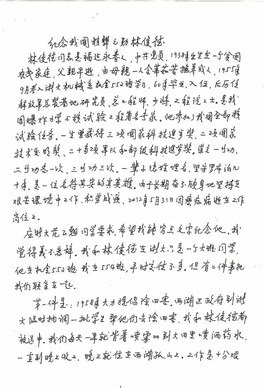 几日前,经中央军委批准,增加“献身国防科技事业杰出科学家”林俊德、“逐梦海天的强军先锋”张超为全军挂像英模。这两位新增的英雄中,林俊德是浙江大学校友,更是一位默默无闻、献身国防科技事业的浙大人。