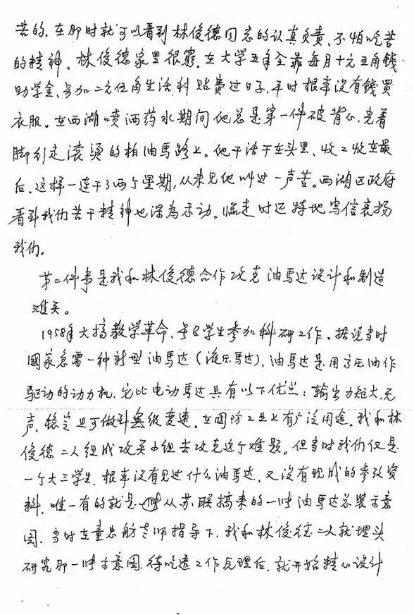 1958年,*文斌张**和林俊德被安排攻克液压马达的难题。当时仅是大三学生的两人,甚至都没有见过液压马达——唯一有的只是一张前苏联液压马达的示意图。在老师的带领下,他们通过反复研究,终于掌握了工作原理,并成功地在三周后制作出了一台液压马达。随后,为了油马达的成功运转,二人又投入到液压试验台的设计和制造中,在一穷二白的基础上,浙大第一台液压试验台出现了,当油马达在试验台上成功运转时,林俊德和*文斌张**欢呼雀跃、热泪盈眶。