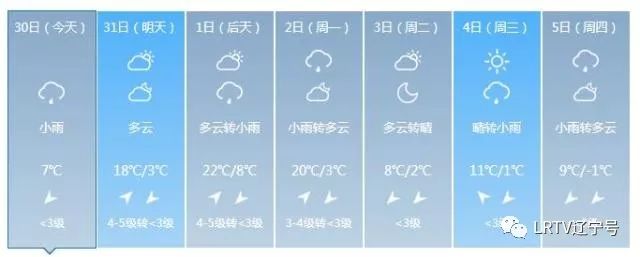 受本轮弱冷空气影响,气温将出现明显下滑,今日早间多地气温跌至冰点及以下,其中最低气温沈阳、抚顺、本溪、阜新、铁岭、盘锦、葫芦岛地区-3℃到0℃,大连、鞍山、丹东、锦州、营口、辽阳、朝阳地区1℃到4℃。