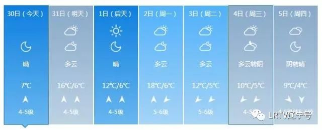 2日天气将出现变化,全天云量较多,最高气温只有17℃,北风也取代了西南风,大家要小心感冒着凉。3日气温继续下降,4日、5日沈城还将迎来降雨。
