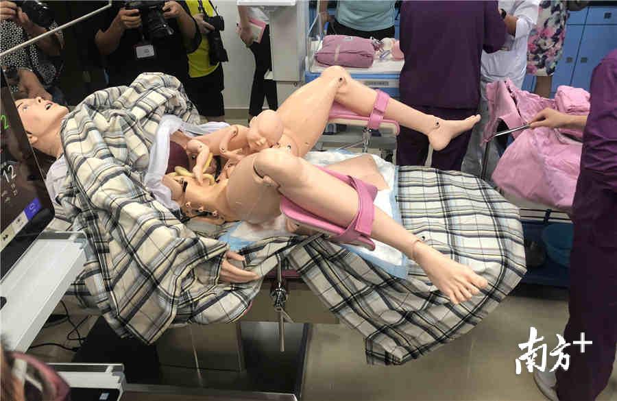 产科大夫正将婴儿一点点从母体内接生到世上,一个粉嘟嘟的小生命降生啦,减掉脐带、取出胎盘……等等,怎么没听到啼哭声呢?原来眼前这生动的一幕竟是智能孕产妇模拟人在“生娃”,红软的“胎盘”、粉嫩的“婴孩”、还有躺在手术台上的“新妈妈”,一切都是那么逼真,有点儿厉害了。