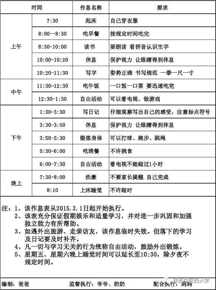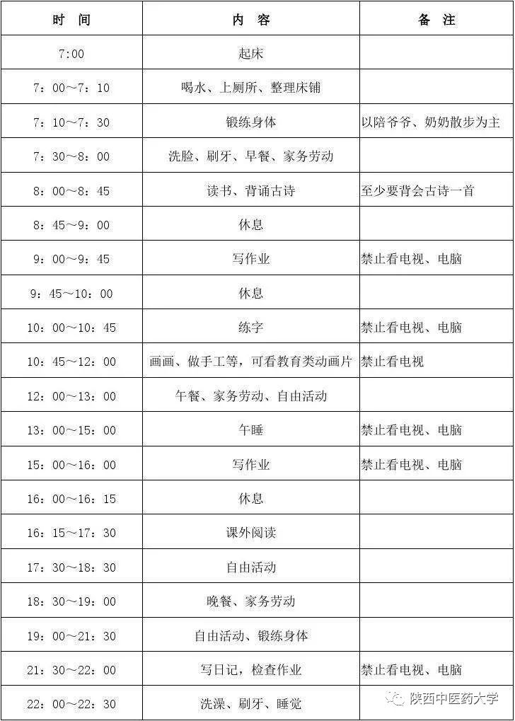 小编说的没错吧,有没有被震撼到,难怪小学生放假总吵着要上学,看完这两张时间表,你们或许知道了答案吧。