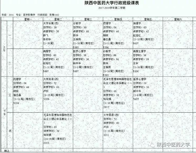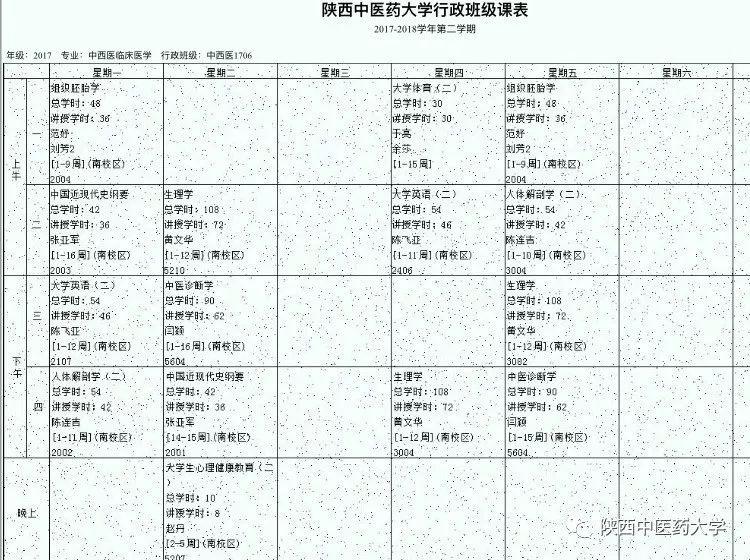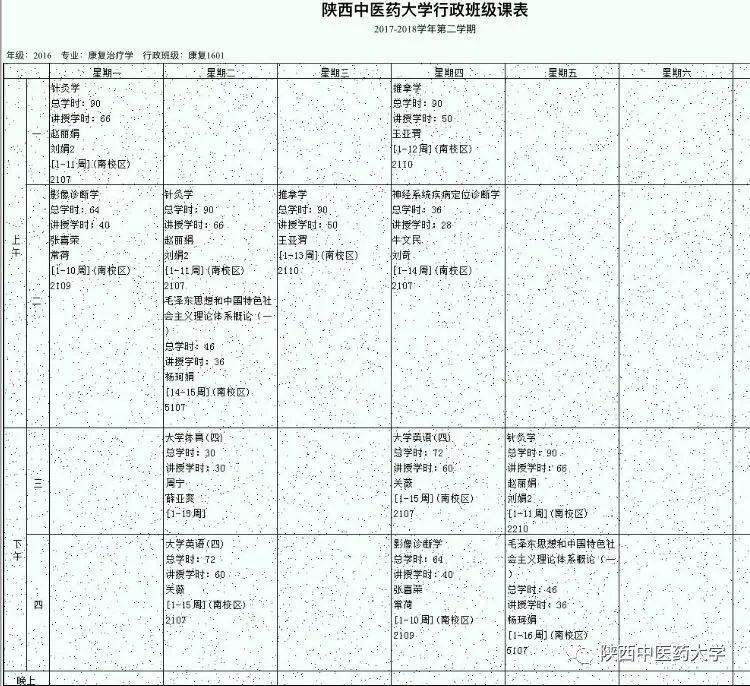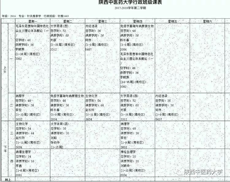 来自针灸推拿学院针推1603课表。