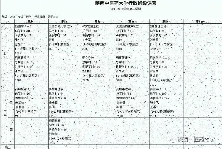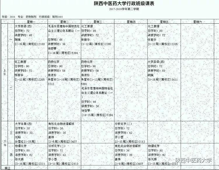 药学院中药制剂1601课表。