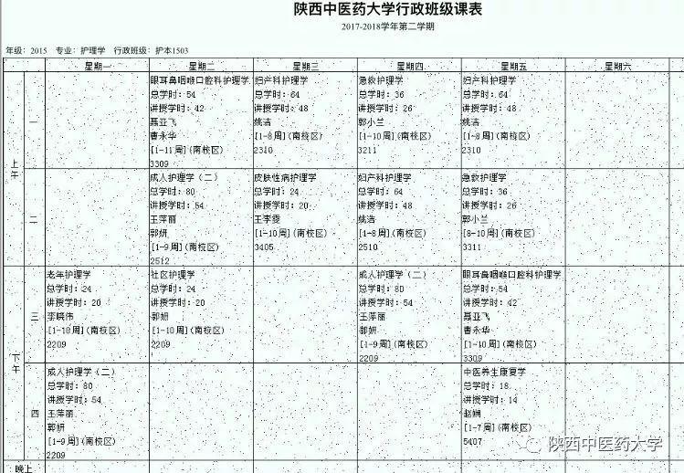 护理学院护理系1503课表。