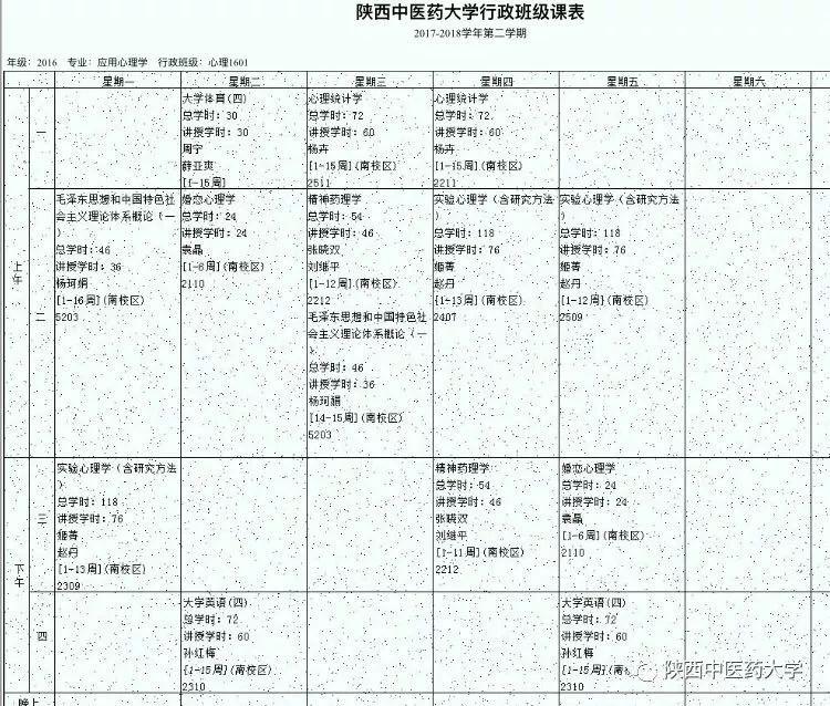 公共卫生学院应用心理学1601课表。