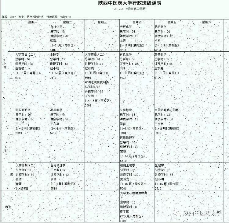 医学技术学院医学检验技术1701课表。