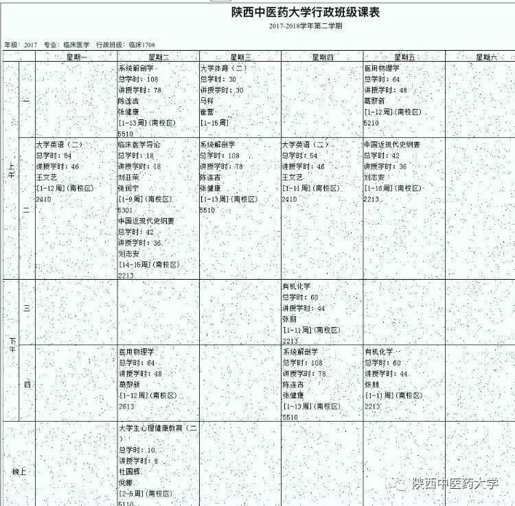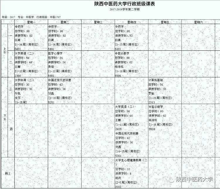 来自陕中大第一临床医学院中医系1707的课表。