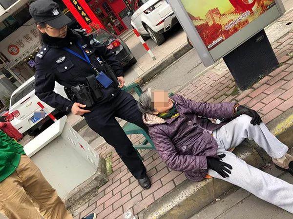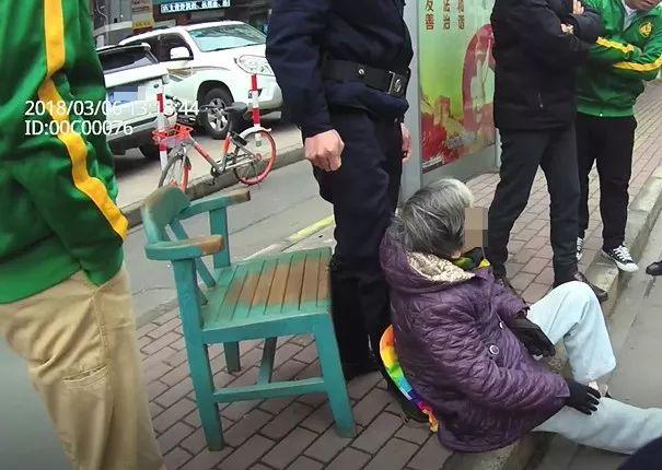 女民警胡畏说,赶到公交车站,老太太坐在台阶上,屁股下有个坐垫,身后有一个小伙子一直用腿撑着,还有一个年轻姑娘在给老人喂水,好几个人都围在老人身边帮忙,“我看到小伙子一直撑着老人,估计是一个姿势站的太久,累得直发抖!”