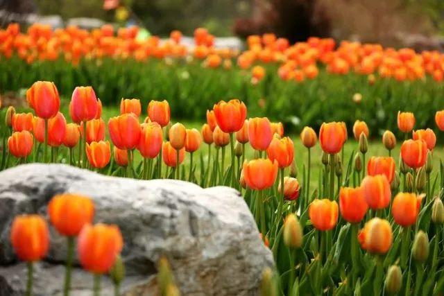 园区结合科学合理的种植技术将100个品种400万株早、中、晚、超晚花期的郁金香巧妙衔接创造了我国北方地区开展最早、品种最多花期最长、种植面积最大的郁金香。