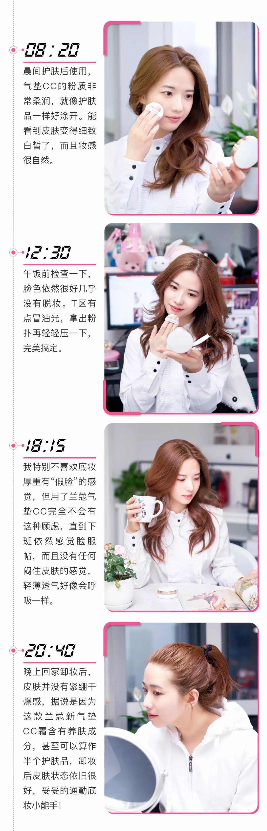 用后感受: 不愧是“干皮挚爱的水润妆”保湿效果超赞!有一些不适合干皮的底妆会“倒拔干”,但兰蔻新气垫CC霜却让人感觉它能够一直锁住水分,为它打call ! 话不多说,干皮小仙女们必入!