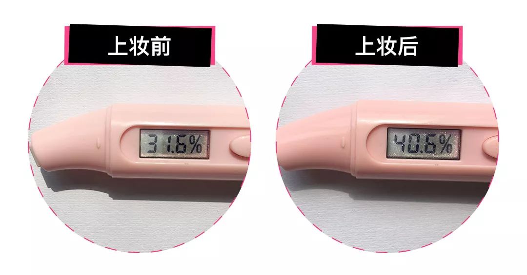 首先它的粉质非常细腻,水润的感觉明显,只需要用粉扑轻轻沾取就能按压全脸。因为我皮肤很容易干燥,所以特别用水分仪记录了一下妆前妆后的差别。