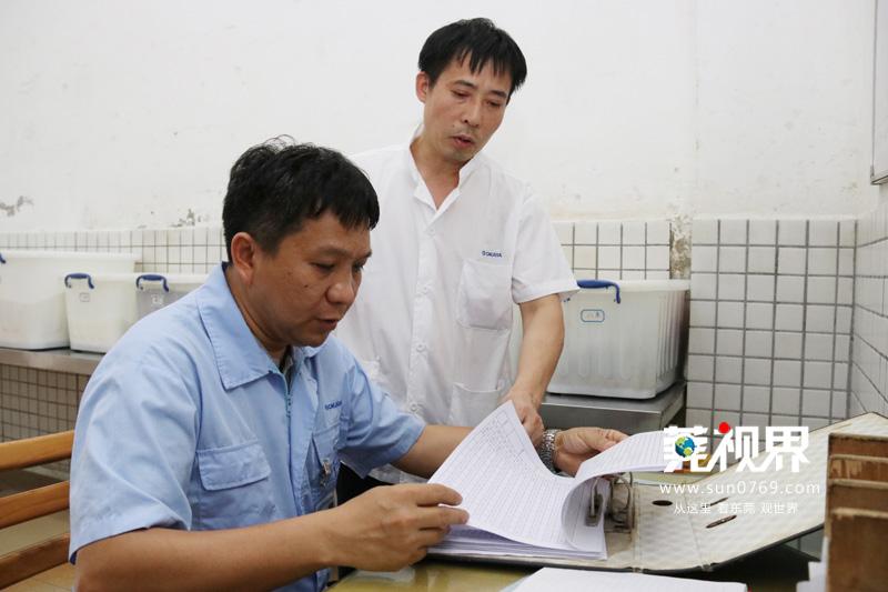 检查饭堂的台账也是黄汉昌每天的工作之一