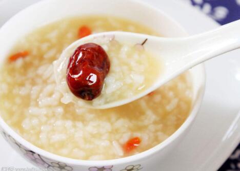 大枣粥 取大枣10~15枚、粳米60克煮粥。可晚餐趁温热服食。大枣味甘性平,含糖类、蛋白质、维生素C、有机酸、钙、磷、铁等,有补脾安神的功效,经常食用,催眠效果良好,老年人尤宜。