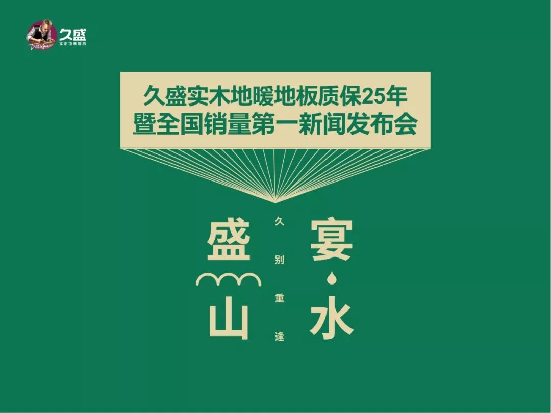 3月20日,在上海浦东新国际博览中心,第二十届中国国际地面材料及铺装技术展(DOMOTEX asia) ,久盛地板在时隔六年后,再次以独具匠心的设计,更具创造性的形象和绿色、健康的品牌表达,携“木·山水”主题概念空间强势入驻,并举行了以“久别重逢,盛宴山水”为主题的久盛实木地暖地板全国销量第一暨质保25年新闻发布会。