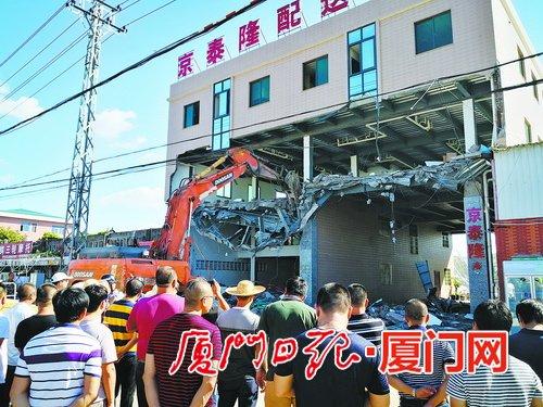 同安区迎难而上拆除“两违”,营造整洁舒适有序的城区环境。图为拆除潘涂社区“两违”。