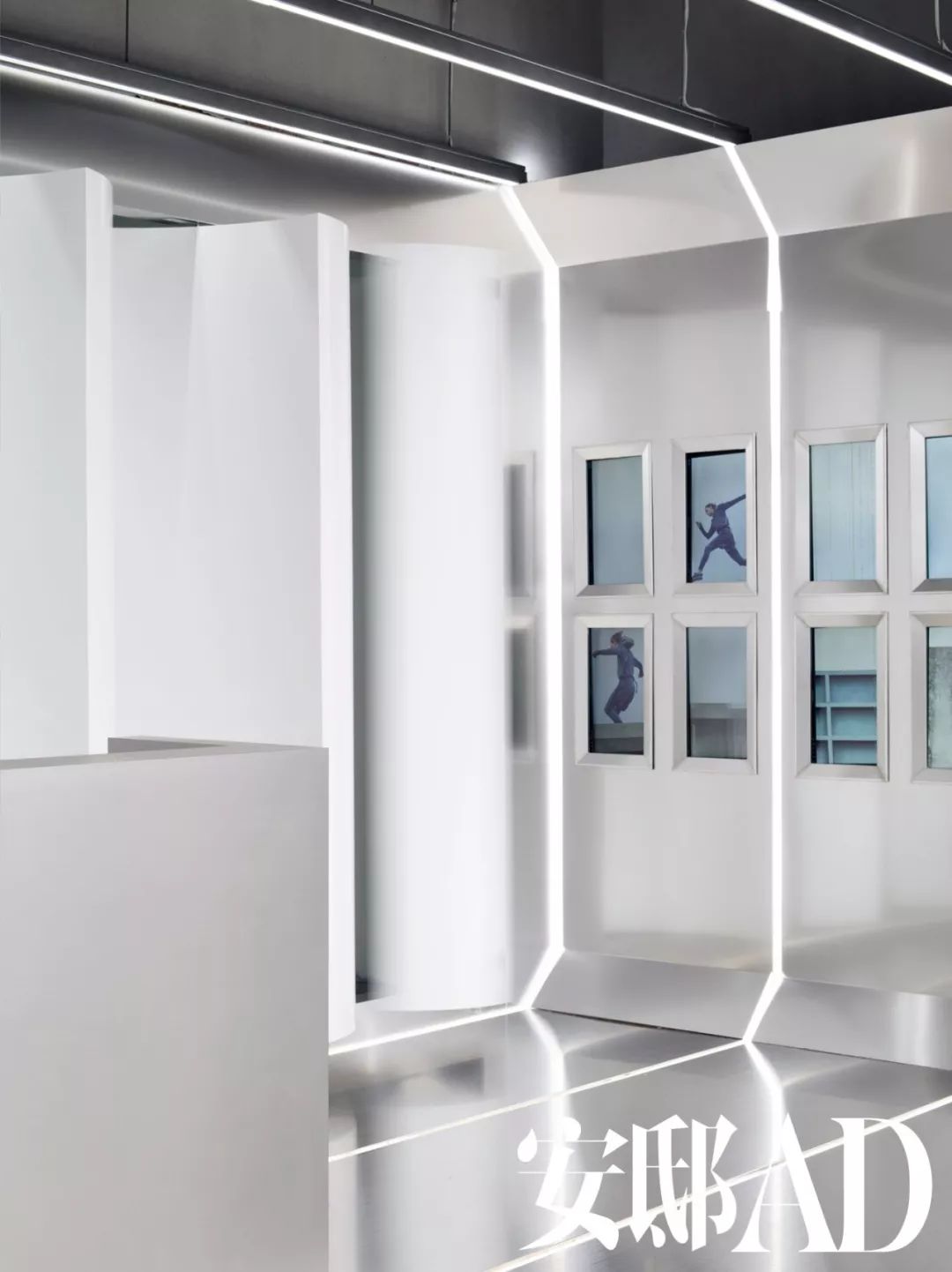电子显示屏、金属板与光带巧妙组合,仿若带人坠入悬浮于未知世界的太空舱。