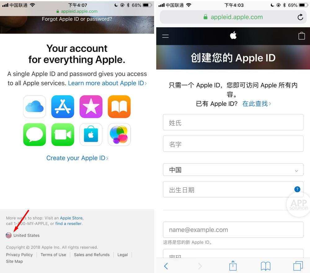 首先,你需要在浏览器中打开苹果官网,拉到底部在地区处选择 United States。