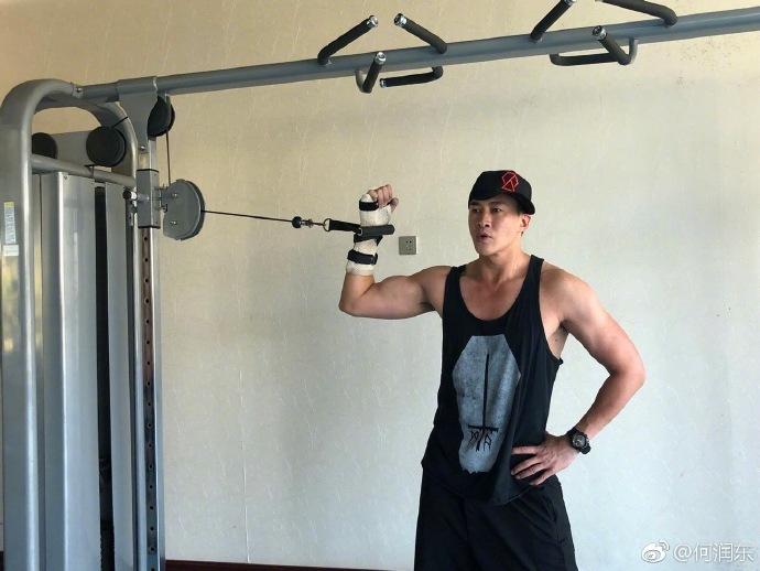 网友都觉得何润东很“身残志坚”,受伤的手绑上东西,只用手腕的力量,他还是在坚持健身,肱二头肌相当明显。估计这也算他康复训练的一部分吧。