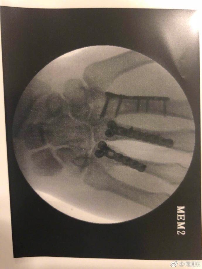 无论怎么看何润东这次的受伤都要比2016年严重得多,那次也是右手,X光片显示无名指有个地方的骨头裂开了,裹了厚厚的石膏,三个星期的时间基本就好完了。