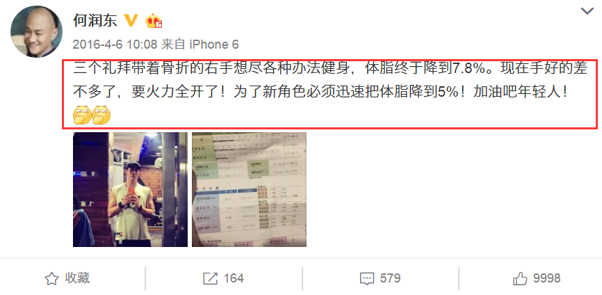 当然,那次他也是没闲住,为了角色带伤狂减体脂。