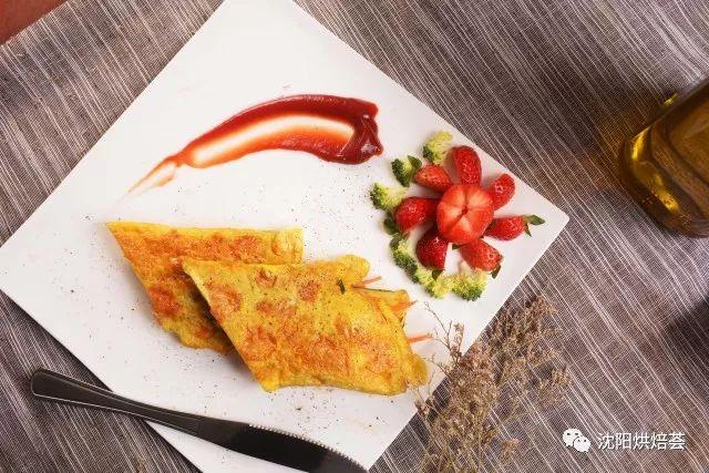 15. 蛋饼切块,装盘。(我加了些新鲜草莓和熟西兰花伴碟,看起来更美腻,精致的西餐吃起来~)撒上一点点黑胡椒调味提鲜,也可以加点番茄酱佐餐。好看好吃又有营养,就这么轻松完成,赶紧来试试吧。
