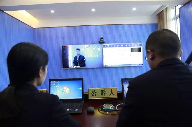 参与"远程六方庭审"中的公诉干警