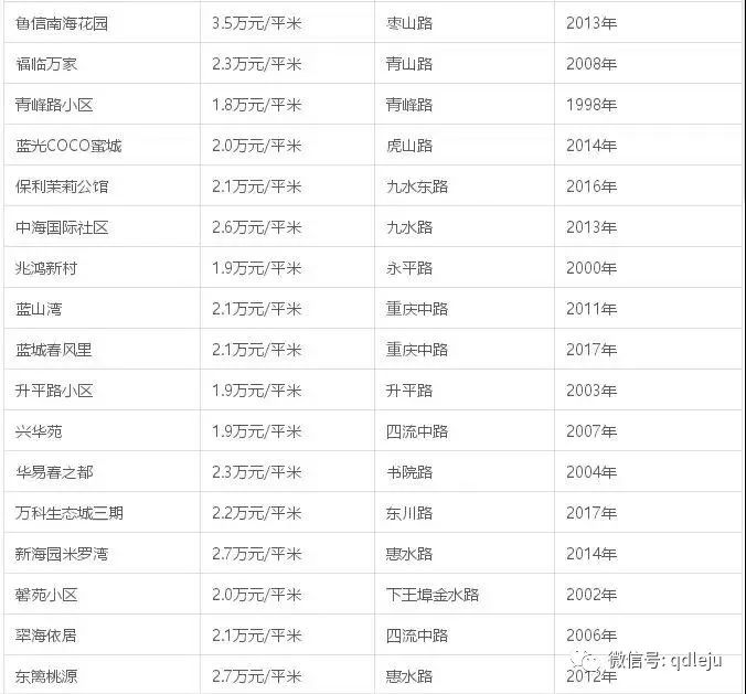 | 绿岛花园 | 2.7万元/平米 | 香港中路 | 2004年 |