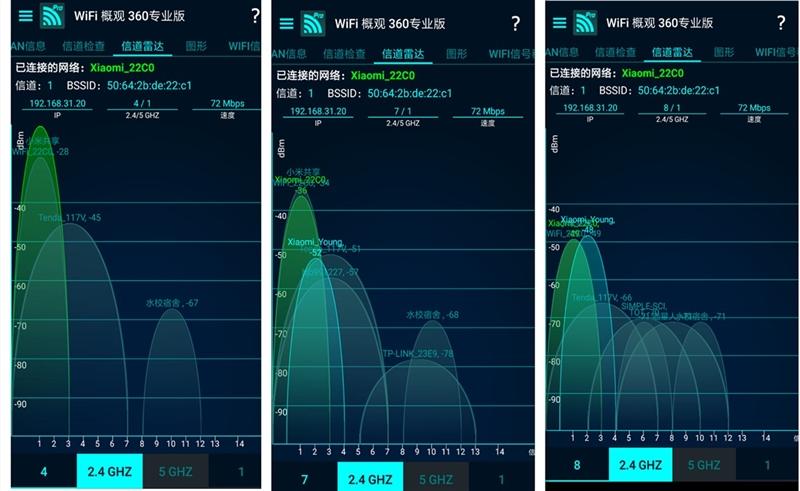 信号为依次顺序排列,A点信号最强,B点隔了一堵墙,信号略低,C点隔了两堵墙,信号更低,但即使是隔墙,依然能够稳定接收到Wi-Fi信号。