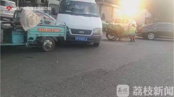 9月26日,这辆牌号为苏E5581J的封闭式货车引起了记者的注意,它就停放在高淳水产批发市场外的一个路口,从下午三点开始,平板车陆陆续续送了至少十几趟的螃蟹过来,全部装到车上,一名身穿条纹上衣的男子在现场负责收购。