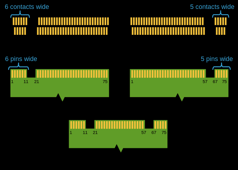 这两者有什么区别呢?首先是针脚定义的不同,B-key可以看到下图,是6根金手指,M-key的话只有5根金手指。