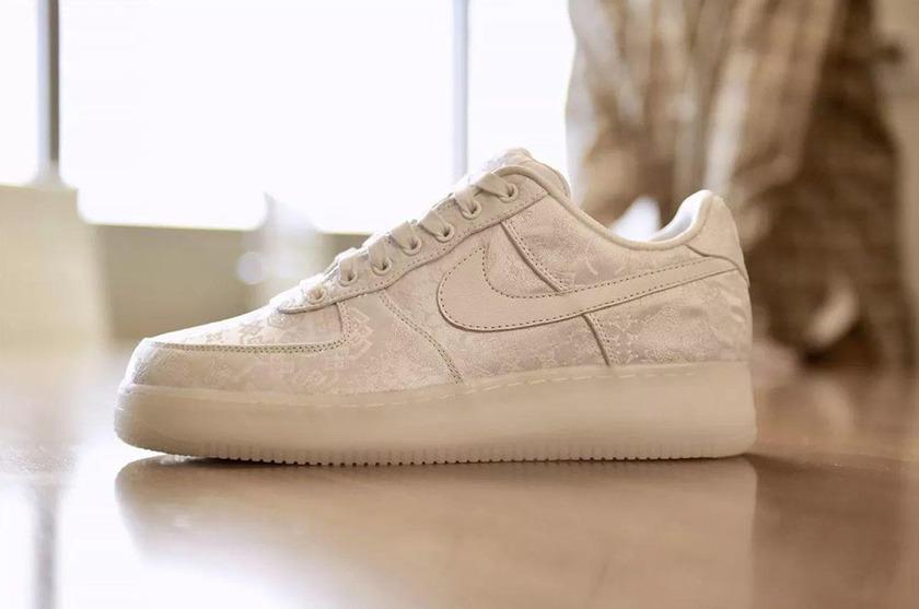 2008 年发售的 Clot x Air Force 1 红丝绸至今都是无数球鞋爱好者眼中的圣物,这也能解释为什么年初发售的白丝绸会这么火爆了。精致的剪纸元素刺绣布满整个白银绸缎鞋面,搭配乳白色水晶大底,清新素雅。而其最大的亮点在于绸缎鞋面之下还暗藏第二层鞋面设计,暗示不要以貌取人,由内而外的展示真正的中国风设计!