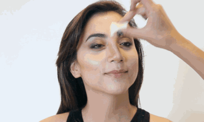 Step1:在眼下三角区、鼻梁中央、下巴的位置涂抹高光。
