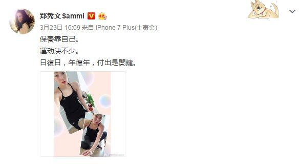 歌手郑秀文也是个运动爱好者,不仅脸变得更加上镜了,皮肤状态也是好得不得了。