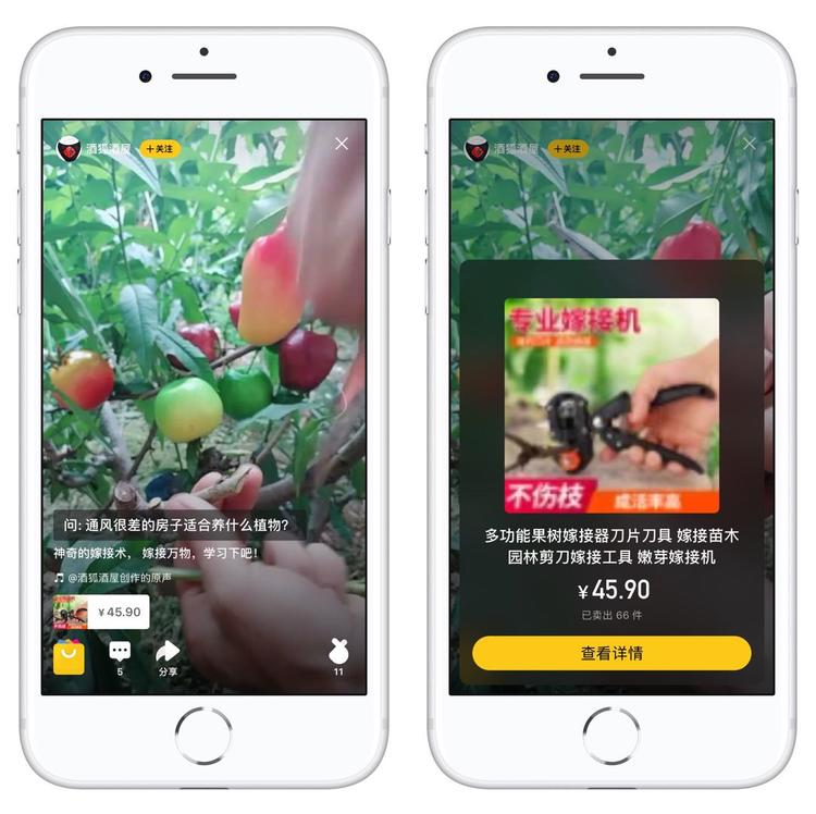 带有电商导购性质的短视频在*放播**完 1 次后,屏幕左下角的购物袋图标都会跳出相应的商品价格,用户点击后可以跳转到淘宝购买。
