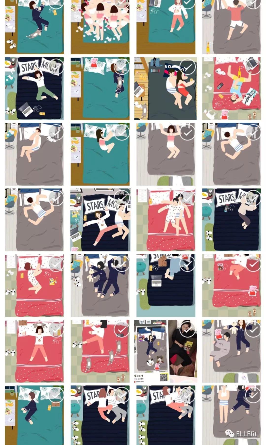 有一些更拼,把自己真实的照片和卡通进行对比,不过涉及肖像版权,老编就不偷偷截图了。可能是编辑的细胞在作祟,一遍遍刷的时候,脑子里冒出一个问题,睡姿,和胖瘦有关吗?