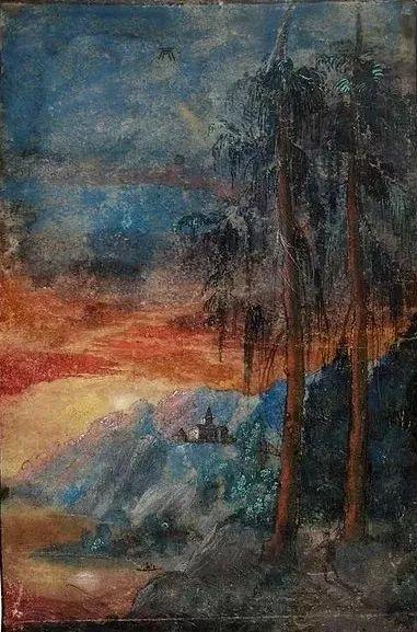 阿尔布雷希特·阿尔特多弗尔《Landscape with Two Spruces and a Castle》,约1517-1520年