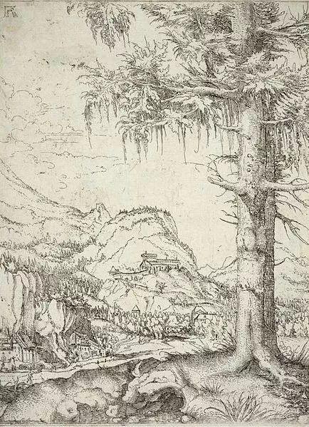 在他之后的某些作品中,人物完全不见了踪影,这在当时是极具突破性的探索与尝试。阿尔特多弗尔完全打破了这种常规,是欧洲第一位只在画面中描绘自然景致的画家。