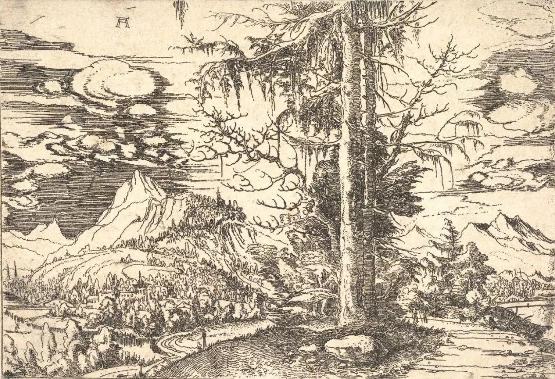 阿尔布雷希特·阿尔特多弗尔《大云杉树(Large Spruce)》,铜版上色,约1517-1520年